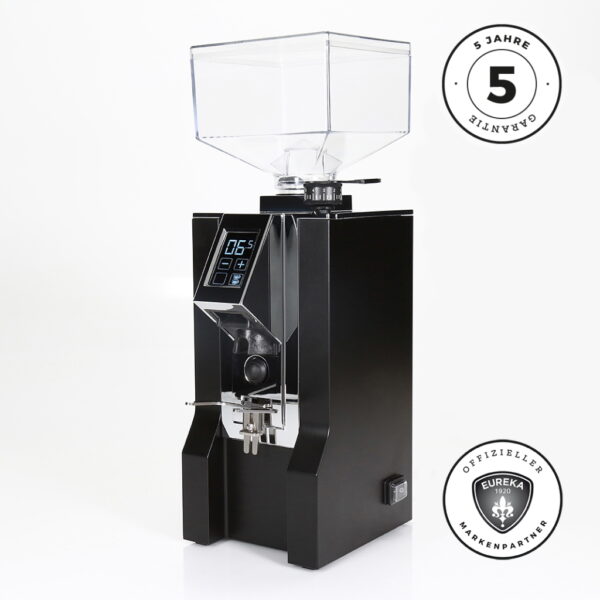 Die Mignon XL ist die erste Hochleistungsmühle, die Eureka unter dem Label Eureka Oro vermarktet. Mit seinem 65 mm Diamond Inside Scheibenmahlwerk, welches bisher nur aus der Atom Specialty Profi Serie bekannt ist, vermahlt sie pro Sekunde beeindruckende 2,3 – 2,8 g Mahlgut. Sie verfügt über das komfortable Touch-Display mit zwei programmierbaren Portioniereinstellungen und ist natürlich auch in geräuschreduzierter Bauweise konstruiert. Die ACE Technologie verhindert das Verklumpen und elektrostatische Aufladen des Mahlguts. Eine mikrometrische Mahlgradeinstellung erfolgt über ein angenehm großes Einstellrad. Die gummierte, abnehmbare und höhenverstellbare Siebträgergabel sorgt für ein für den Siebträger schonendes „Hands-Free“-Arbeiten. Mit der Mühle wird die speziell für Mignon Mühlen entwickelte Barista Matte, nebst Tamper Station und Reinigungspinsel, mitgeliefert. Wer nach professionellen Leistungsmerkmalen im Gewand einer Mignon sucht, der ist mit der Mignon XL bestens bedient.